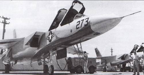 Несколько слов о силовой установке. Оба прототипа и несколько первых серийных «Виджилентов» были оснащены ТРДФ фирмы General Electric J79-GE-2 с тягой на форсаже по 6870 кгс. Следующие самолеты оснащались двигателями J79-GE-4 с усовершенствованным компрессором и увеличенной до 7480 кгс тягой, а затем в дело пошли J79-GE-8/8C. Аналогичные двигатели устанавливали и на другой перспективный самолет ВМС США — F4H-1 Phantom II (см. «АиВ», № 3'2011), что сулило существенную унификацию.