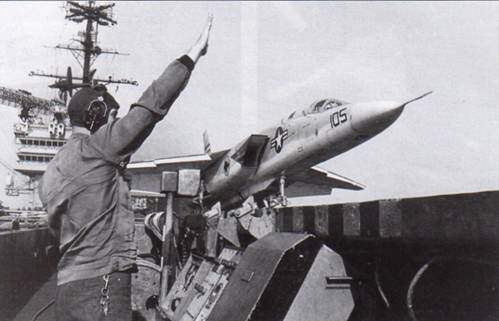 Первая потеря в эскадрилье RVAH-1 произошла 20 июля 1965 г. Из-за обрыва троса аэрофинишера совершавший посадку самолет пронесся по палубе и рухнул в воду. Экипаж, в который входили командир эскадрильи коммандер Валентин Мэтула (Valentin Matula) и оператор л-т Карл Гронквист (Carl Gronquist), не успел катапультироваться и погиб. Замечу, что из-за огромной, по корабельным меркам, массы «Виджилента» инциденты на взлете и посадке не были редкостью. Корабельные катапульты и аэрофинишеры при обслуживании этих машин работали на пределе своих возможностей. Это был самый тяжелый самолет, когда-либо эксплуатируемый на авианосцах. Не удивительно, что у моряков он получил нелестное прозвище «слон».