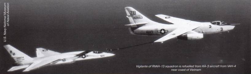 Первыми RA-5C в январе 1964 г. получила 3-я учебная эскадрилья, переименованная в силу новой специфики в RVAH-3 (первая буква — от английского reconnaissance — разведывательный). Весной того же года со «Скайуорриоров» на разведывательные «Виджиленты» перевооружилась эскадрилья RVAH-5 Savage Sons, а до конца 1964 г. на новые машины пересели еще четыре боевых подразделения: RVAH-1, -7, -9, -13. Как оказалось, очень вовремя, т. к. США начинали войну во Вьетнаме.