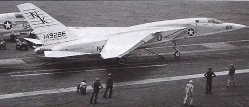 В том же январе «Норт Америкен» представила свои предложения по проекту специалистам ВМС. В целом, проект военных устроил, но они потребовали внести некоторые изменения. Так. крыло было изначально оптимизировано для полетов на малых высотах и имело относительно высокую удельную нагрузку. Флот же требовал увеличить площадь крыла, дабы удовлетворить требованию по катапультному взлету с палубы в безветренную погоду. Обеспечить это весьма не просто, ведь самолету необходимо взлететь с полной заправкой и максимальной боевой нагрузкой в то время, когда авианосец находится в дрейфе при полном штиле. При этом каким-то невообразимым способом надо обеспечить устойчивость и управляемость при полете на малой скорости в условиях турбулентности у воды. В ходе дальнейших консультаций с флотом был найден компромисс: скорость в два Маха и взлет с катапульты при нулевом ветре стали приоритетными, а возможность низковысотного полета — вторичным требованием. На согласование техзадания ушел год…
