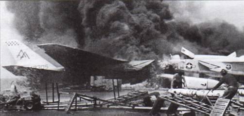 В самом начале 1969 г. авианосец «Энтерпрайз», на борту которого в том числе находилась эскадрилья RVAH-6, отправился в очередной поход к берегам Вьетнама. Традиционно боевой работе предшествовали тренировки в районе Гавайских островов и инспекция оперативной готовности для подтверждения необходимой квалификации личного состава. После соблюдения всех требуемых норм авианосец вышел из Перл-Харбора, и в первое же утро, 14 января, на палубе случился сильнейший пожар. Неудачно припаркованный аэродромный пусковой агрегат своим выхлопом нагрел НАР «Зуни», покоившуюся под крылом «Фантома». Взрыв ракеты спровоцировал детонацию других боеприпасов, находившихся на палубе. Цена оплошности — 27 погибших, свыше 300 раненых и 15 самолетов. «Виджиленты» практически не пострадали: только один из них получил осколочные пробоины, которые техсостав залатал своими силами.