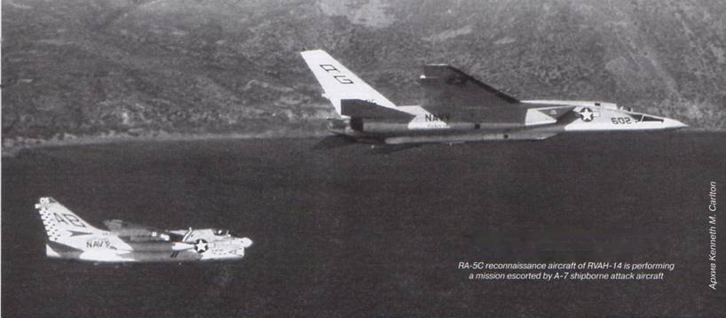 Самолет-разведчик RA-5C из RVAH-14 совершает полет в сопровождении палубного штурмовика А-7