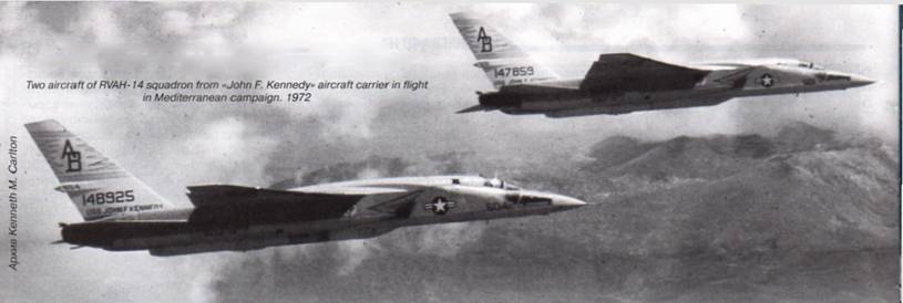 Пара самолетов из эскадрильи RVAH-14 с авианосца «Джон Ф. Кеннеди» в полете во время средиземноморского похода. 1972 г.