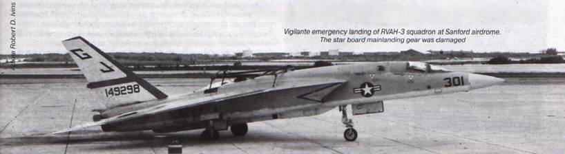 Аварийная посадка «Виджилента» из эскадрильи RVAH-3 на аэродроме в Сэнфорде, в ходе которой повреждения получила правая основная опора шасси