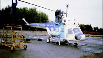 …Более 30 лет работает на Ми-2 летный директор авиакомпании. Заслуженный пилот СССР Владимир Иванович Саяпин. На этом вертолете довелось ему работать и за рубежом, в Египте. Начальник штаба летного отряда Сергей Владимирович Капустин на вертолете Ми-8 принимал участие в шести антарктических научных экспедициях. В двух из них летал его нынешний коллега, старший штурман авиакомпании Александр Александрович Кургузов. Им. приходилось выполнять полеты с палубы научно-экспедиционных судов «Михаил Сомов» и «Академик Федоров» в самых сложных климатических условиях Заполярья. Больше 10 тысяч часов налета – таков летный стаж пилотов Ми-2 Валерия Григорьевича Хлопушина и Анатолия Алексеевича Задорожного.