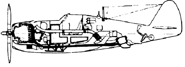 Цилиндрический маслобак теперь занял место пулемётов наверху фюзеляжа за двигателем. Всю нижнюю часть фюзеляжа под крылом Картвели отдал центральному воздуховоду. Но его конструкция очень хрупкая, и если истребитель садится с убранным шасси, то она сомнётся. Ремонт надолго выведет боевую машину из строя. Поэтому родилась идея установить внутри защитную опору, препятствующую сминанию воздуховода. Она должна держать вес самолёта, и её сделали в виде стальной лыжи на пространственной ферме со стержнями, закреплёнными на лонжеронах крыла.