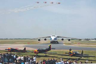 Российское участие в нынешней ILA 2008 было достаточно противоречивым. С одной стороны, на статической стоянке появился, и то не надолго, всего лишь один отечественный самолет – тяжелый транспортный Ан-124-100 компании «Волга-Днепр» (а ведь в 2006 г. берлинское небо сотрясалось от грохота двигателей сверхманевренного истребителя МиГ-29ОВТ, условный пожар водой, окрашенной в цвета российского флага, тушил Бе-200ЧС, на стоянке демонстрировался ремоторизованный Ил-76ТД-90ВД, а часть российской делегации прибыла на салон на новеньком лайнере Ту-204-300). Зато с другой – павильонная часть экспозиции выглядела очень впечатляюще, хотя каких-то особых новинок или супер-прорывных проектов на стендах российских компаний-участников обнаружить не удалось. Но это и понятно – российский оборонно-промышленный комплекс и аэрокосмическая промышленность пока не воспринимают Европу, и особенно ее западную часть, в качестве потенциального рынка для своих разработок и серийной продукции. Исключение составляют программы модернизации состоящей на вооружении европейских стран военной техники советской разработки и производства (примером является демонстрировавшийся на ILA 2008 модернизированный специалистами РСК «МиГ» при участии западных партнеров истребитель МиГ-29 ВВС Словакии), а также на предоставлении отдельных эксклюзивных услуг, которые недоступны нашим зарубежным коллегам – такие, как перевозка крупных и негабаритных грузов, рынок которых весьма прочно заняла в Европе российская авиакомпания «Волга-Днепр».