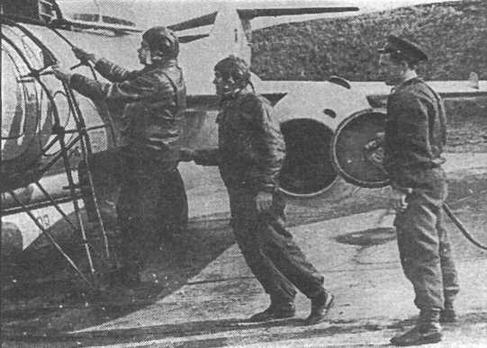 Командир 1-й АЭ 146-го ГвИАП А.Козий и летчик-оператор В.Шулепов (слева) после перехвата «Дракона». Васильков, 1963 г.