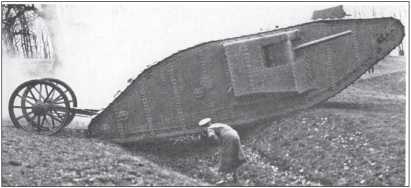 «Большой Вилли» («Мать») преодолевает ров с пологими скатами.