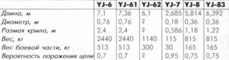 Основные характеристики ПКР YJ-6, YJ-61, YJ-62, YJ-7, YJ-8 и YJ-83