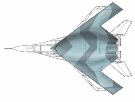 Итак, что же представляет собой перспективный боевой беспилотник «МиГа»? В соответствии с современными мировыми тенденциями аппарат выполняется по малозаметной схеме «летающее крыло» без хвостового оперения. Конструкция машины в значительной степени выполняется из композиционных материалов.