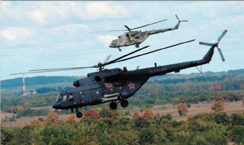 Пара Ми-8 с тактическим десантом на борту над полигоном