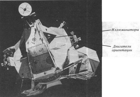 Но сажевый выхлоп 45-килограммо- вого импульсного ЖРД (в начале и конце импульса) ни теоретически, ни практически не способен забрызгать окна, так как продукты выхлопа высотного (длинного) сопла направлены (в вакууме) по оси тяги ЖРД и ничего запылить не смогут, кроме самой двигательной платформы и агрегатов, расположенных за ней.