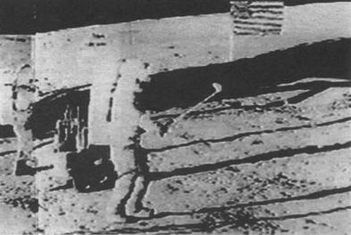 Если автор фильма (Гордон) не знает, что ведет свою увлеченную речь об обведенном ретушером теле-кадре TV- камеры, которая у всех миссий ставилась напротив LM, по сути – о весьма некачественно нарисованной реконструкции кадра, запечатляюще- го игру в гольф Алана Шепарда в самом конце EVA-2, – остается только развести руками.
