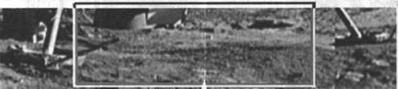 Здесь же якобы под соплом ЖРД LM авторы указывают на следы астронавта – "как могли следы попасть под сопло"? – задают авторы вопрос, отрезая ответ ножницами. Если вырезать из кадра небольшой фрагмент, на котором не будет стоек шасси – только сопло ЖРД и грунт, то действительно создается иллюзия, что следы прямо под посадочной ступенью, но иллюзия исчезает, как только рассмотришь полные состыкованные кадры – 9278, -9279, на которых четко просматривается вся дорожка следов астронавта, обходящего модуль. Опять наивное недоразумение?