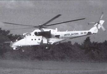 За прошедшие годы Украина неоднократно направляла свои контингенты для участия в миротворческих операциях ООН, и авиаторы сыграли активную роль во многих из них. Первой такой миссией можно считать операцию в Камбодже, где украинские вертолетчики оказались еще в составе миротворческих сил СССР и действовали в 1991-92 гг. Затем вертолетные подразделения украинских миротворцев побывали в целом ряде стран (см, таблицу на стр. 38). Так, большой обьем работы в очень сжатые сроки выполнили вертолетчики 488-го, 320-го ОВП и 555-го ОПЛВП (всего – около 150 человек) в Сванетии: 10-14 октября 1993 г. 18 вертолетов за 291 вылет перевезли из района конфликта 7634 человека и 487 т грузов. Наиболее долго украинские вертолетчики остаются в Либерии – уже состоялось 17 ротаций 56-го отряда. За прошедшие годы его экипажи налетали около 43000 ч, перевезли 6000 т грузов и 175000 человек. Всего же за 21 год украинские миротворцы налетали более 64000 ч, доставив свыше 7200 т грузов и 293000 человек. Известен лишь один случай применения ими оружия – к нему пришлось прибегнуть в 2011 г. экипажу Ми-24, находившемуся в Кот Д’Ивуаре. Не обошлось и без потерь. 5 ноября 1993 г. в бывшей Югославии подбили украинский Ми-8, экипаж которого выполнил вынужденную посадку, 11 сентября 1997 г. в Боснии и Герцеговине в горной местности разбился Ми-8 с делегацией ООН на борту. 9 ноября 2001 г. еще один Ми-8 потеряли в Сьерра-Леоне.
