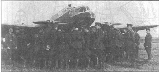 Группа военных авиаторов осматривает УТ-3 в НИИ ВВС