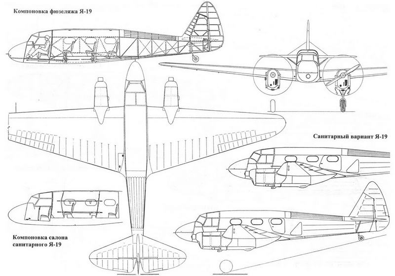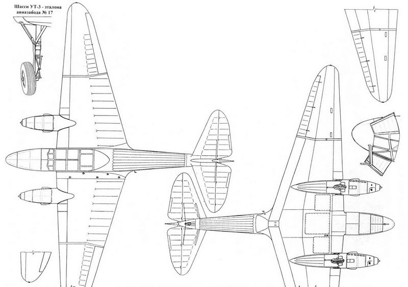 Тактико-технические характеристики самолетов семейства УТ-3 Параметр С-17 УТ-3* Я-19 Двигатели: - тип Рено 6Q-01 МВ-6 - мощность, л.с. 2x220 Масса, кг - пустого 1969 - 2134 - взлетная 2742 2800 2950 Скорость, км/ч - максимальная 290 248 271 - посадочная 90 95-100 102 Набор высоты 3000 м, мин. 18.35 21.50 17.00 Практический потолок, м 6500 - 5600 Дальность полета, км 1000 - 780** Разбег, м - 390-400 420 Пробег, м - 360 365 * Серийный завода №301 ** 1015 км при перегрузочном взлетном весе 3100 кг