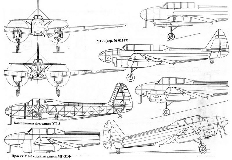 Учитывая результаты испытаний, планировали дальнейшее совершенствование УТ-3: собирались переделать нос фюзеляжа, частично остеклив его, расширить кабину, установить новый фонарь и т.д. Эти изменения отвечали и новым тактико-техническим требованиям к двухместному учебно-тренировочному самолету, утвержденным командованием ВВС РККА в марте 1941 г. В соответствии с ними подготовили проект модернизации машины под более мощные 9-цилиндровые звездообразные моторы МГ-31Ф в 350 л.с. Был создан проект «эталон №2» с двухкилевым оперением. Другим направлением эволюции УТ-3 стал разрабатывавшийся под руководством Бакшаева учебный пикирующий бомбардировщик УТПБ с тормозными решетками под крылом.