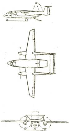 Конструктивные особенности. Самолет двухба- лочной схемы с высокорасположенным крылом и П-образным хвостовым оперением. Гондолы двигателей являются продолжением балок, несущих хвостовое оперение. В хвостовой части фюзеляжа расположена грузовая рампа-трап. Шасси трехопорное с носовой опорой, рассчитано на эксплуатацию с грунтовых аэродромов. Назначенный ресурс самолета 25 000 летных часов.