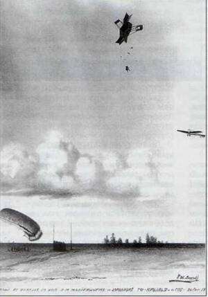 Юзеф Древницкий имел на этот счет совсем другое мнение. Уж ему- то были хорошо известны возможности «спасительного зонта». Сотни раз доверял он парашюту свою жизнь, прыгая с аэростата. С появлением авиации, с ростом числа катастроф не мог не задумайся он и над устройством парашюта для летчиков.