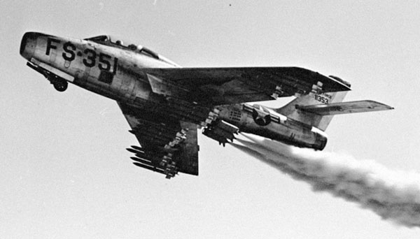 Укороченный взлёт F-84F с ракетным вооружением