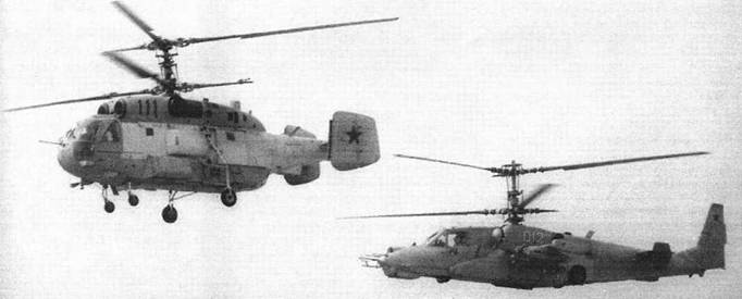 Когда началась разработка Ка-27, то имелись все основания полагать, что появится необходимость в транспортно-бое- вых, поисково-спасательных, противоминных вертолетах на его базе. Но в связи с изменениями в деятельности нашего ВМФ, корабли которого все реже ходят в дальние походы, и затруднениями в финансировании, оказалось возможным разработать и внедрить в серию лишь поисково-спасательный вертолет Ка-27ПС и транспортно- боевой Ка-29. Испытания вертолета радиолокационного дозора Ка-31 завершились, но серийное производство его не организовано. Противоминный вертолет, к которому флот всегда проявлял вполне объяснимый интерес, не разрабатывался.
