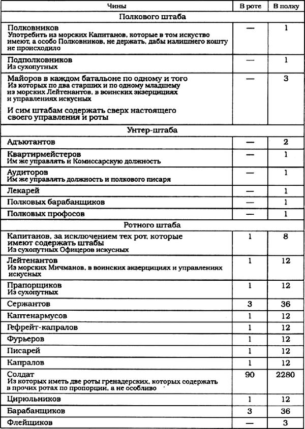 Штат одному морскому полку, состоявшему из трех батальонов, а каждый из 4 рот. 1803 г.