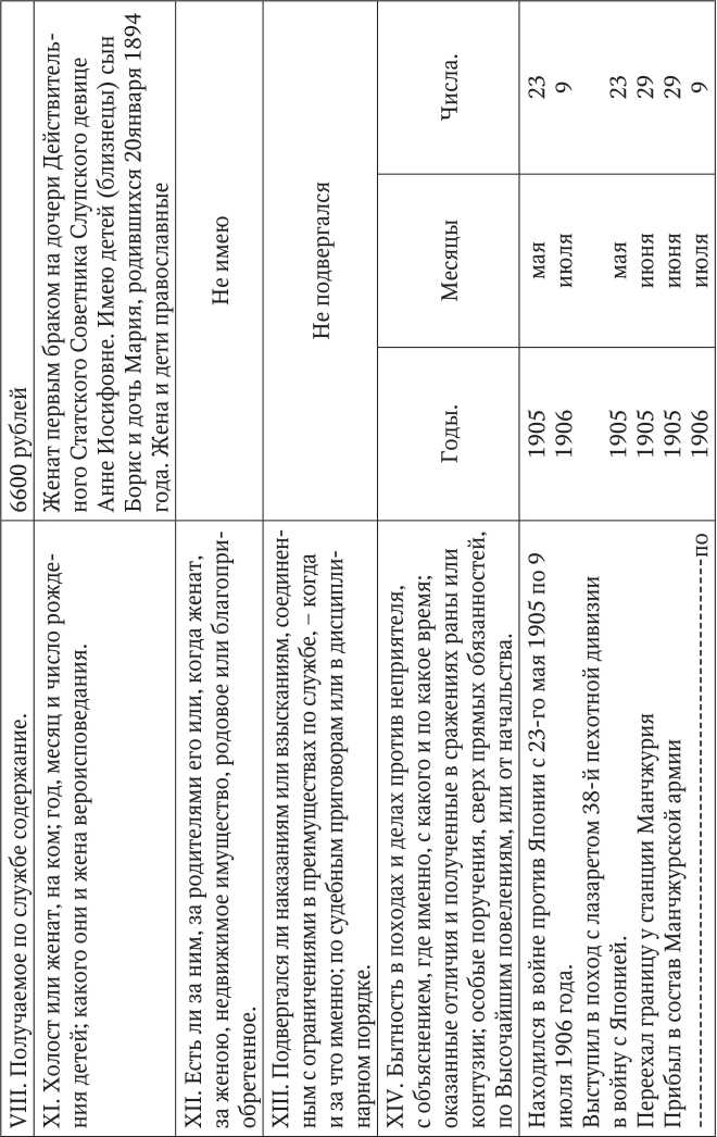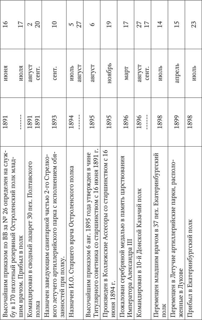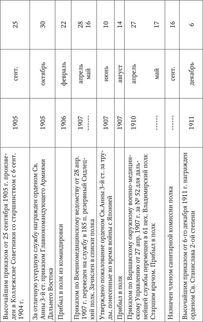 Образцом обычного по тем временам, честного служения Родине является послужной список Николая Александровича Федорова. Выдержки из послужного списка Н.А. Федорова приведены на фотографии (Рис. 30).
