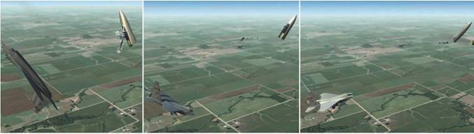 …С момента взлета прошла 21 минута. В очередном упражнении истребители набрали высоту около 6000 м и разошлись на расстояние около 4,5 км, продолжая полет параллельными курсами. Первым в бой вступил подполковник Фланаган, выполнивший доворот влево в сторону ведомого с креном 45°, а затем вираж в обратную сторону. На расстоянии около 4 км бортовая РЛС самолета майора Стилвелла выполнила захват машины ведущего, и самолеты начали сближаться.