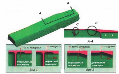 Точки обнаружения производственных дефектов в лонжеронах головной части фюзеляжа самолетов F-15C
