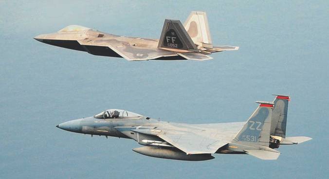 F-15C и его преемник в ВВС США – F-22A «Рэптор» – в совместном полете