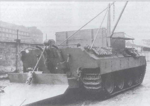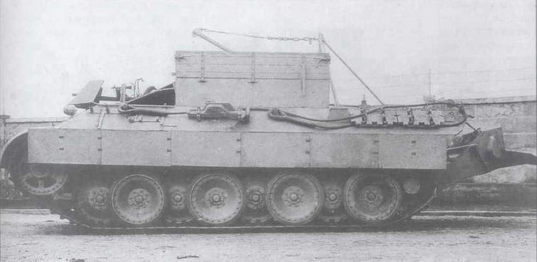 «Конструктивные изменения танка «Пантера», вызванные установкой лебедки и стрелы, незначительны и направлены в сторону упрощения общей конструкции танка. Тяговые усилия лебедки — 40 — 45 тонн (по тросу) в сочетании с возможностью устройства полиспаста (наличие пары роликов и длинный трос) обеспечивают эвакуацию аварийных и застрявших тяжелых и средних танков из любых противотанковых рвов, применяемых при современной обороне, а также из болот, рек и т.п.