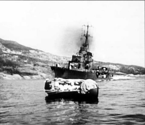 Кадры из фильма "Командир корабля", главные роли в котором сыграли бывшие итальянские эсминцы