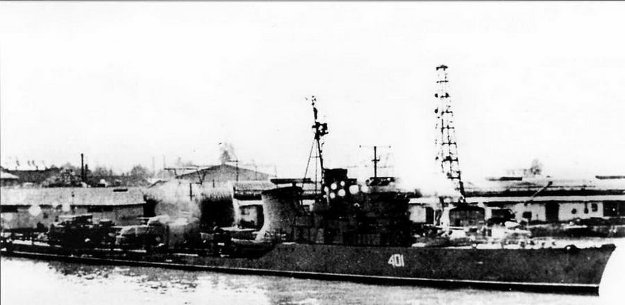 Корабль воздушного наблюдения КВН-11 (бывший "Ловкий") в Батуми. Хорошо видны антенны станций П-8 на носовой и средней надстройках