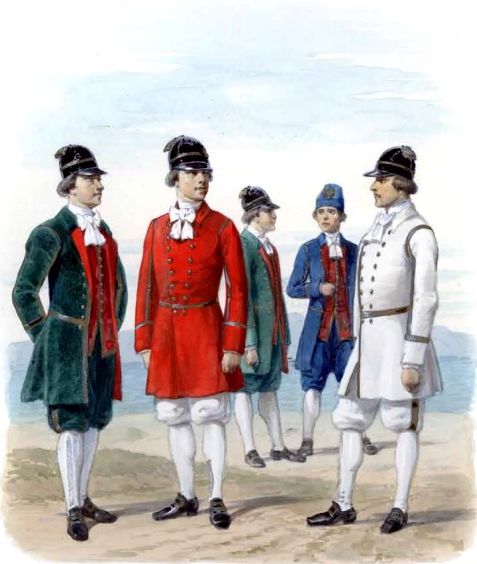 Матросы придворной гребецкой команды. 1770 г. Из собрания ЦВММ.