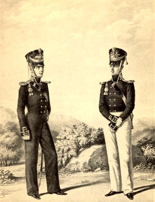 Обер-офицер и штаб-офицер Гвардейского экипажа. 1810 г. В зимней и летней форме.