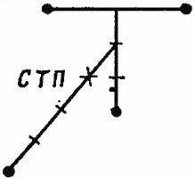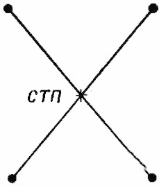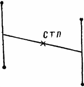 б) пробоины соединить попарно крест-накрест прямыми линиями; точка пересечения этих линий и будет средней точкой попадания (рис. 51).