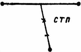 Для определения средней точки попадания по трем пробоинам надо две пробоины соединить прямой линией; середину этой линии соединить с третьей пробоиной; новую линию разделить на три равные части; точка, ближайшая к первой линии, и будет средней точкой попадания (рис. 52).