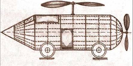 Придавая различные углы лопастям винта, изменяя величину их работы при помощи особых механизмов (который запатентовал год спустя известный французский воздухоплаватель Иосиф Кроче- Спинелли (прим. автора), комбинируя различным образом силы горизонтального и подъемного винтов, предполагается давать снаряду движение по горизонтальной и вертикальной плоскости – совокупно или по одной из них».