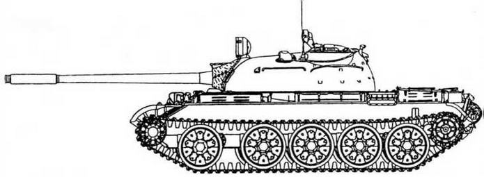 Первый серийный массовый танк послевоенного выпуска. Разработан в 1945 — 1946 годах в КБ-520 завода № 183 (Нижний Тагил) на базе корпуса, трансмиссии и ряда других технических решений танка Т-44. При проектировании изначально задавались более высокие тактико-технические характеристики, чем у Т-34 и Т-44, а также учитывался опыт Второй мировой войны. Принят на вооружение Советской Армии в 1947 году. Серийно производился на заводах № 183 (Нижний Тагил) с 1947 года и № 75 (Харьков) с 1948 года.