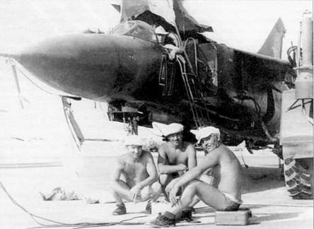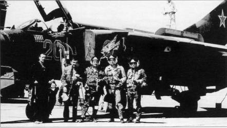 Летчики 168-го иап у истребителя МиГ-23МЛД. Баграм, лето 1988 г.
