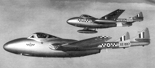 В апреле 1944 г. третий опытный образец DH.100 прошёл испытания в исследовательском центре ВВС AAEE (Aeroplane & Armament Experimental Establishment) в Боскомб-Дауне. В целом оценки военных лётчиков были положительными. Они отметили низкий уровень шума даже на высоких скоростях, удобство кабины, отсутствие каких-либо проблем на рулении по травяному полю. К недостаткам отнесли тенденцию к путевой неустойчивости, которая снижала точность прицеливания при применении оружия, а также слишком широкий переплёт козырька фонаря, затрудняющий обзор (хотя в целом обзор из кабины признали хорошим).