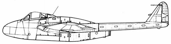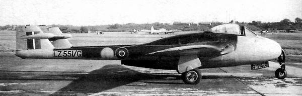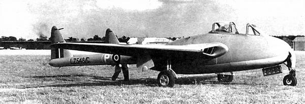 Второй опытный образец DH.100 (LZ551/G) отличался от первого формой вертикального оперения, март 1944 г.