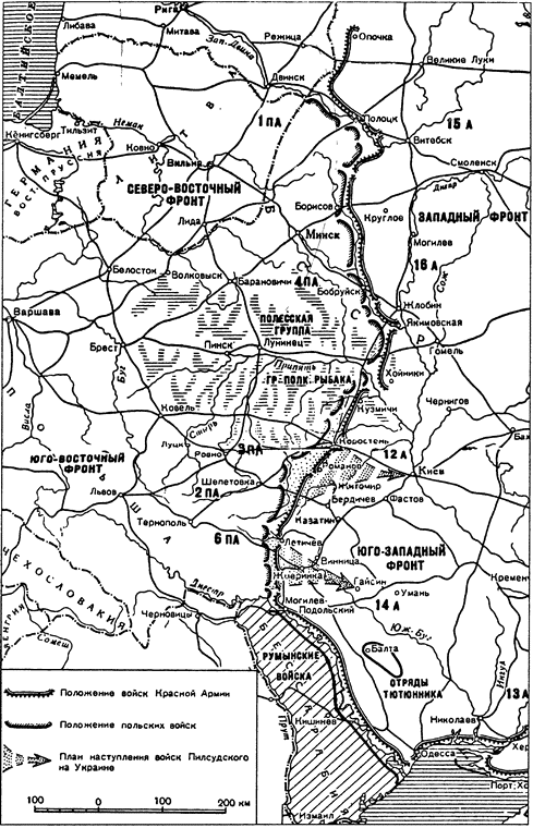 Именно поэтому в Белоруссии польский фронт уже осенью 1919 года был установлен в основном по рекам Западная Двина и Березина. Лишь в Полесье впоследствии происходили подвижки, но это было связано с событиями в Украине, а также с обеспечением южного фланга Литовско-Белорусского фронта.