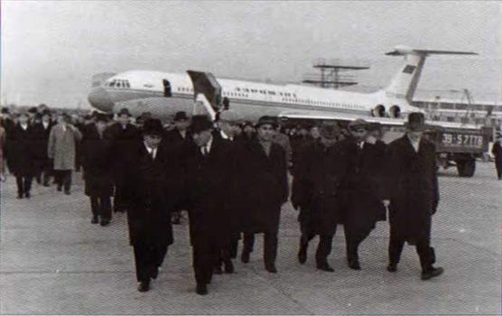 Правительственная делегация осматривает Ил-62 на заводском аэродроме