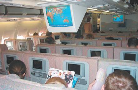 Впрочем, самым распространенным способом развлечь себя в полете является, конечно, просмотр фильмов и прослушивание музыки. В экономклассе Emirates вам предлагается 15 видео- и 22 аудиоканала. На мой взгляд, выбор фильмов и музыки может удовлетворить любому вкусу. Мою младшую 15-летнюю дочь можно назвать «киноманкой», и она часто стыдит меня за то, что я не в курсе последних новинок кинопроката. Благодаря десяти полетам на борту авиалайнеров Emirates я смог несколько заполнить пробелы в своем кинообразовании, посмотрев «Гарри Поттер и узник Азкобана», мультик «Шрек-2», «Властелин морей», «Однажды в Мексике», «Лестница 48» и некоторые другие фильмы.