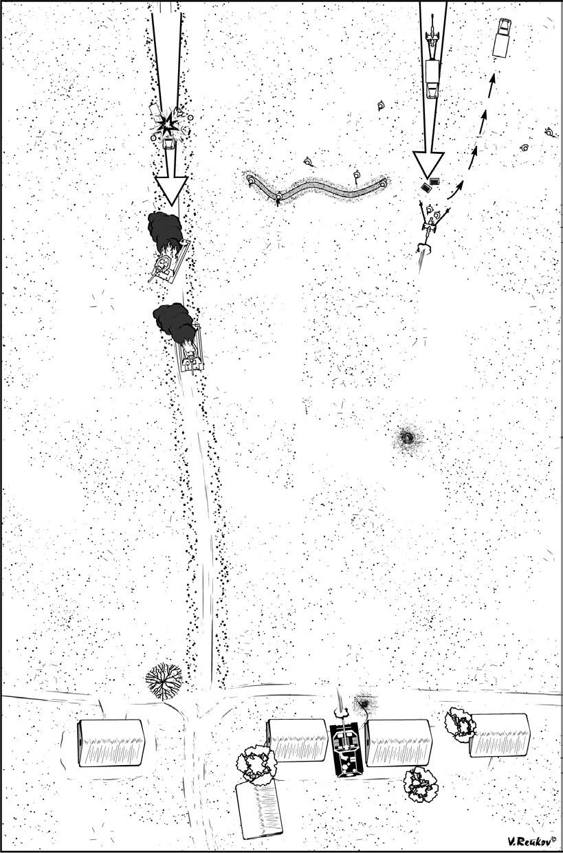 – В зависимости от местности примерно 50– 150 метров. Так – чтобы, как в кино, колесо к колесу стояли, такого не было. Так, может быть, только на салютах стреляют!
