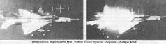 выйти на дистанцию эффективного пушечного огня, утратил осмотрительность и был сбит ушедшим вверх «Миражем». Летчику удалось благополучно катапультироваться. Его ведомый вместо того, чтобы прикрывать командира, без предупреждения выполнил переворот и попытался атаковать «Мираж», который ушел вниз. На пикировании он потерял его из вида и на предельно малой высоте вернулся на свой аэродром.