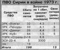 Как видим, воздушные бои носили ожесточенный характер. Окончательный итог войны в воздухе над сирийским фронтом в октябре 1973 г. - в таблице.